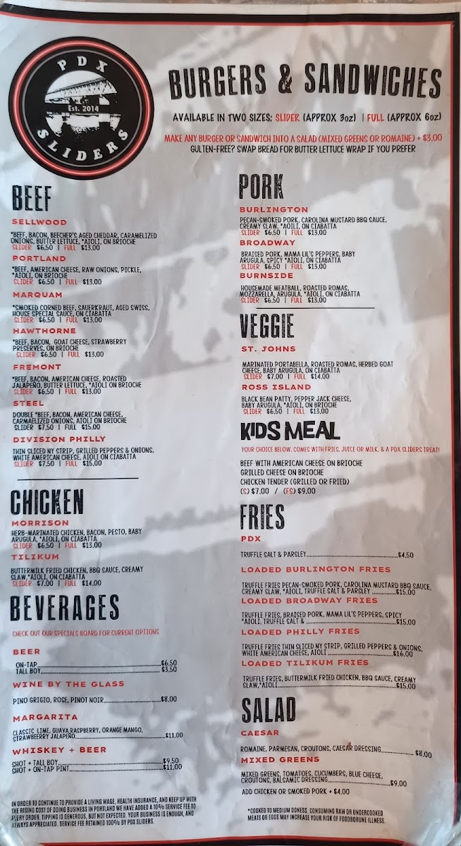 Welcome to PDX Sliders, a gem nestled in the heart of Portland, Oregon. Located at 1605 SE Bybee Blvd, this charming spot has quickly become a favorite destination for burger lovers and sandwich aficionados alike. The moment you step in, you’re embraced by a warm, inviting atmosphere that reflects the spirit of Portland's vibrant food scene.
